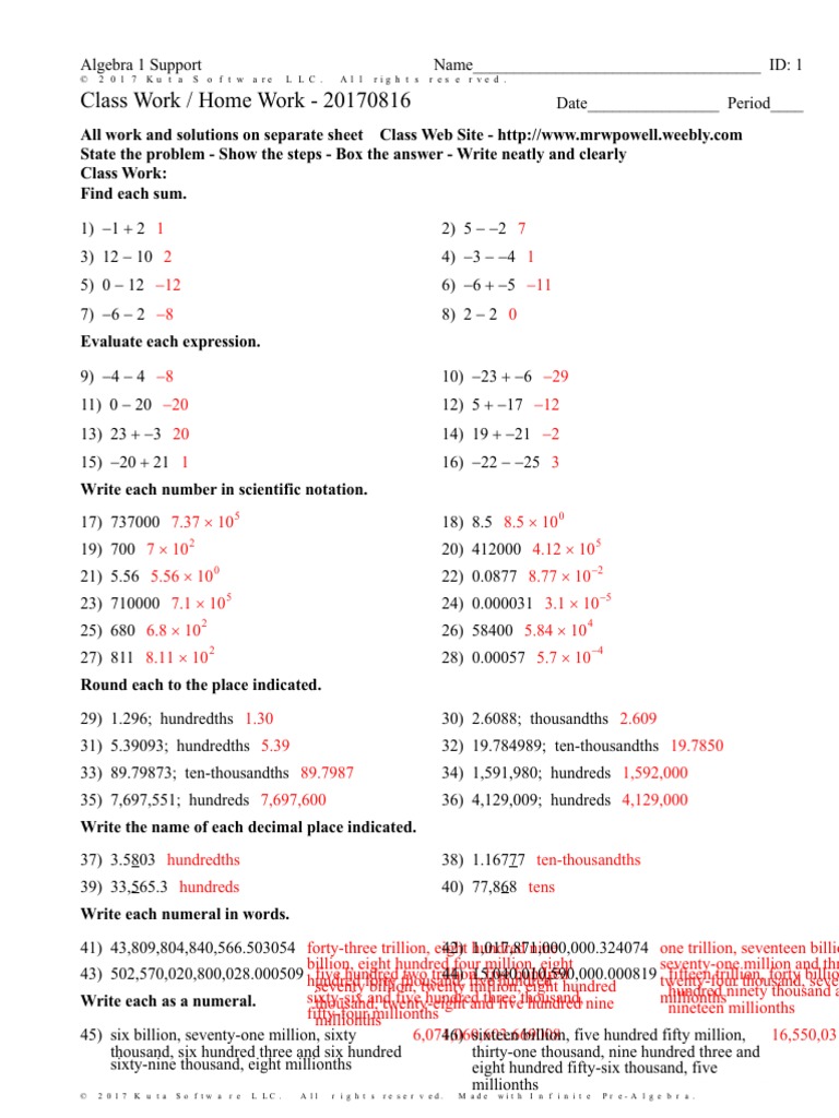 A1s Cw Hw 20170816 Ans Mathematical Notation Teaching Mathematics