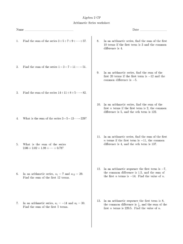 Arithmetic Sequence Sum Worksheet Pdf